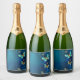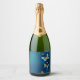 Golden Butterflies on a Blue Background Sparkling Wine Label