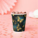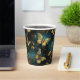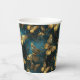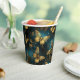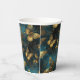 An elegant set of paper cups with a butterflies pattern in glittering golden hues and glowing blues.