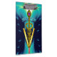 Elegant ,artistic.classy gold caduceus with entwined golden serpents,blue wings and 3D gem stones ,vibrant lights and fractal waves in aqua blue,turquoise,teal,yellow,white colours.Caduceus is symbol of ancient Greek astrology,medicine and healing ,sceptre of Hermes messenger of Gods and,divinity of zodiacal sign Gemini. Cool jewel design,modelling and rendering by Bulgan Lumini (c).