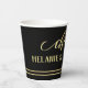Festive paper cups featuring a gold stylized Cheers text with stars and script text. Beautiful for a birthday, Christmas or other celebration.