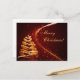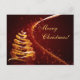 Beautiful post card with golden Christmas tree and editable greeting text on deep red starry background.