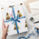 Golden Merry Christmas Tree with Candles Elegant White and Gold Look Christmas Tree Pattern gift wrapping paper