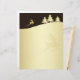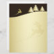 Elegant gold Christmas illustration featuring a golden silhouette of a reindeer and tree with Merry Christmas greeting on a brown background.