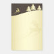 Elegant gold Christmas illustration featuring a golden silhouette of a reindeer and tree with Merry Christmas greeting on a brown background.