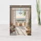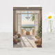 This sophisticated Christmas card features a serene ocean view framed by elegant French doors, with golden holiday ornaments and a beautifully decorated Christmas tree adding festive sparkle. The warm glow of coastal light reflects off golden décor, creating a perfect blend of seaside tranquillity and holiday glamour. Ideal for those who love both luxury and the ocean, this card brings Christmas magic with a coastal twist.