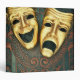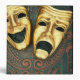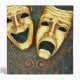 Golden comedy and tragedy masks on patterned leather | David Muir | AssetID: 72797344