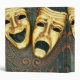 Golden comedy and tragedy masks on patterned binder