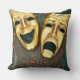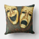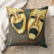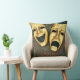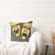 Golden comedy and tragedy masks on patterned throw pillow