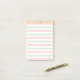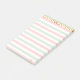 Golden confetti on pastel pink, white and mint striped background Post-It Notes. Fine text can be personalized.