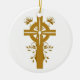 Golden Cross Floral Double Sided Round Ornament