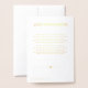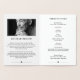 Funeral program printed with gold foil on the cover with a cross surrounded by golden rays. Celebrating the life of your loved one. Add a photo of them inside the folded funeral program along with an obituary and the order of service in black letters against a clean white background. You can also add acknowledgements or a poem or a prayer on the back, also printed with gold foil.