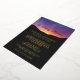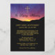 Funeral service invitation featuring a photo of the sun rising behind the black silhouette of mountains. A gold cross decorates the sky, above the words In Loving Memory in black script. Add your invitation wording in elegant gold foil fonts.