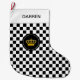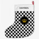 Golden Crown on Black White Chequerboard Pattern Large Christmas Stocking