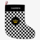 Golden Crown on Black White Chess Pattern Large Christmas Stocking
