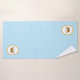 Elegant towel set with beautiful golden crown on white and turquoise blue background. Chic modern towel set.