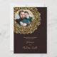 This invitation design has a luxurious and elegant theme. The front page features a deep brown background with ornate golden floral patterns forming a circular frame at the top, where a custom photo can be placed. All text is editable, allowing personalization for names, event details, or messages. The fonts are stylish and sophisticated, with a golden finish that complements the decorative frame, giving the overall design a classy and celebratory feel—perfect for an anniversary occasion.