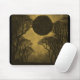 Grungy and cool Dark Forest Eclipse Mousepad in gold featuring a quiet forest scene with a lunar eclipse. This digital art mousepad will look great on any desktop. Customize with your own text.