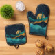 Golden Desert Nightscape – Abstract Cactus Art Oven Mitt & Pot Holder Set