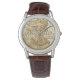 The watch looks really great! Very sharp and well done. The leather band is really nice, though for a man's watch I think it should be longer. Unfortunately, it isn't big enough for my husband's wrist but I will get a replacement because he is very excited to wear it!