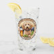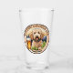 Golden Doodle beer glass featuring a label with a Golden Doodle dog, mountains, hops and glass of ale.