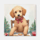 This adorable painting features a Golden Doodle helping decorate cookies in a cozy holiday kitchen. A whimsical and joyful Christmas artwork full of sweet festive charm.