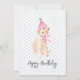 Watercolor Golden Doodle Dog Art in Birthday Hat, Ribbon in Pink on white, mini birthday cakes background with custom HAPPY BIRTHDAY in grey. Easy to personalize text, text colour. Great for ANY Birthday celebration, Dog Lover, Golden Doodle Family, Pet Birthday, Dog Mom / Dad Birthday. Festive, Sweet, Fun. Mix and match entire Dog Lovers Collection by TMCdesigns.