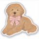 This adorable vinyl sticker features a sweet golden doodle wearing a pink gingham bow—perfect for laptops, water bottles, notebooks, and more. Durable and water-resistant, it’s a cute way to add a little puppy love to your everyday essentials or party favors.