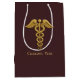 Double snake caduceus. Gold colour icon. Custom background colour. Custom text on both sides.