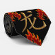 Cool silky necktie adorned w/an original design by digital artist, Leslie Sigal Javorek, featuring Golden Chinese characters representing the word "Dragon" interspersed w/ golden dragons & warm, gleaming red flames against a black background, this is an elegant tie suitable for the fanciest party - or be a rebel and where it with your black leather pants & a white silk shirt. Looks as great on the ladies as the guys!