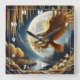Golden Eagle Perched on Branch at Nighttime Square Wall Clock