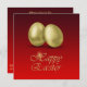 Glamourous illustration with 2 golden easter eggs on a red background. Matching envelope for this invitation: