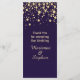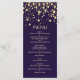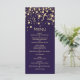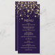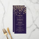 Golden effect confetti on violet background Wedding Menu Rack Card.