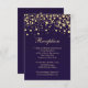 Golden effect confetti on violet background Wedding Reception flat card