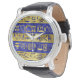 Golden Egyptian hieroglyphs pattern blue stone Watch