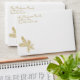 Richly elegant metallic style gold pattern featuring delicate engraved mistletoe, pine and holly on a white background. Lines of customizable text for your name and address with complementary graphic on front. Matching greeting card, postage, address labels and stickers available.