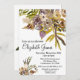 Elegance and beauty with this gorgeous fall watercolor floral baby shower invitation. Features deep purples, browns, creams, and glitter accented leaves.