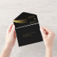 Announce your love in style with our Golden Elegance Wedding Invitation. A modern and glmourous Black and Gold with a golden swoosh sets the tone for your special day. Explore our themed wedding collection and capture your unique love story in every detail. Embrace modern elegance with this exquisite all in one invitation.