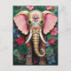 golden elephant with colorful flowers postcard