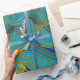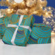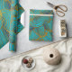 Golden Embossed Swirl Wave Pattern on Blue Wrapping Paper