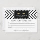 Coordinates with the Golden Eyelashes with Mod Black and White Pattern Business Card Template by 1201AM. An optical black and white pattern creates visual interest as a background on this customizable gift certificate template. This design features eyelashes in faux gold - perfect branding for eyelash extensions, makeup artists, cosmetic companies, lash bars and more. © 1201AM CREATIVE