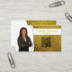 Golden Faux Glitter with Custom Photo & QR Code Business Card