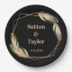 Golden Feathers on Black Rehearsal Dinner Paper Plate