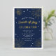 Invite friends, family and neighbours to your Fourth of July celebration with these festive invitations in a classic red, white, and blue colour palette with gold foil text accents and fireworks. Modern design features a navy blue background dotted with patriotic stars and gold foil fireworks. Customize with your event type, making this versatile summer invitation perfect for your annual July 4th barbecue, BBQ, cookout, block party or Independence Day celebration.