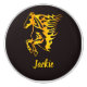 Striking golden flame horse design set against a dramatic black background, enhanced with a custom name for a touch of personalization and allure.
