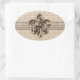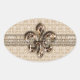Golden Fleur De Lis with Cream Damask Pattern Oval Sticker
