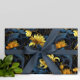 Golden Florals Dark Blue Leaves Black Background Wrapping Paper