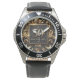 My husband loves the watch, he likes the dial, the graphics, the band, and it keeps perfect time.