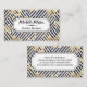 Golden Flowers | Blue White Striped Pattern Business Card