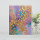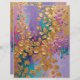 Flowers painted in gold on a background of pink, lilac, purple and turquoise.