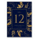 Golden Foliage | Elegant Gold Navy Blue Wedding Table Number
